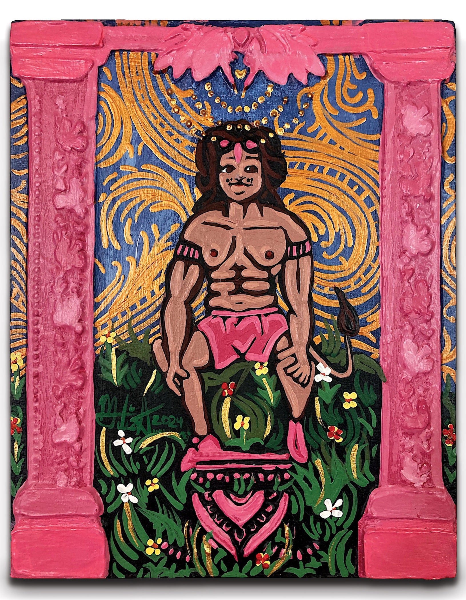 Leo the Léon, Mixed Media on Gessoed Panel, 10 in x 8 in, 2024 © Melissa Allegories