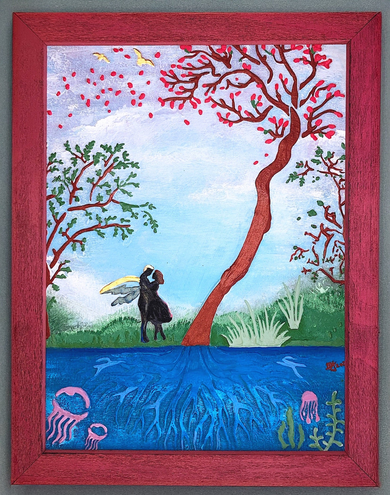 Uphill, Mixed Media on Gessoed Panel, 16 in x 12 in, 2024 © Melissa Allegories